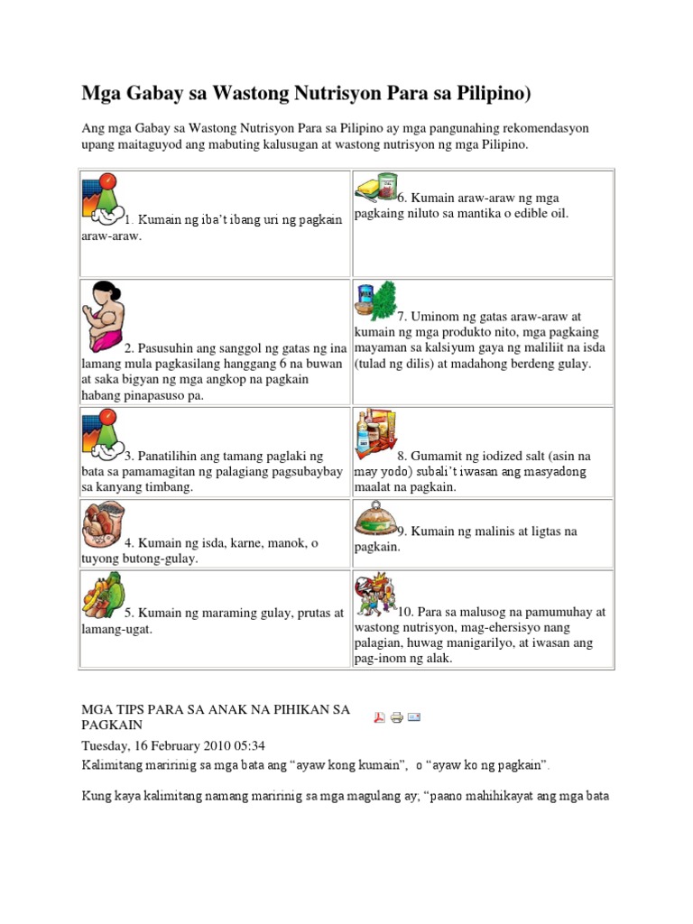 Mga Gabay Sa Wastong Nutrisyon Para Sa Pilipino