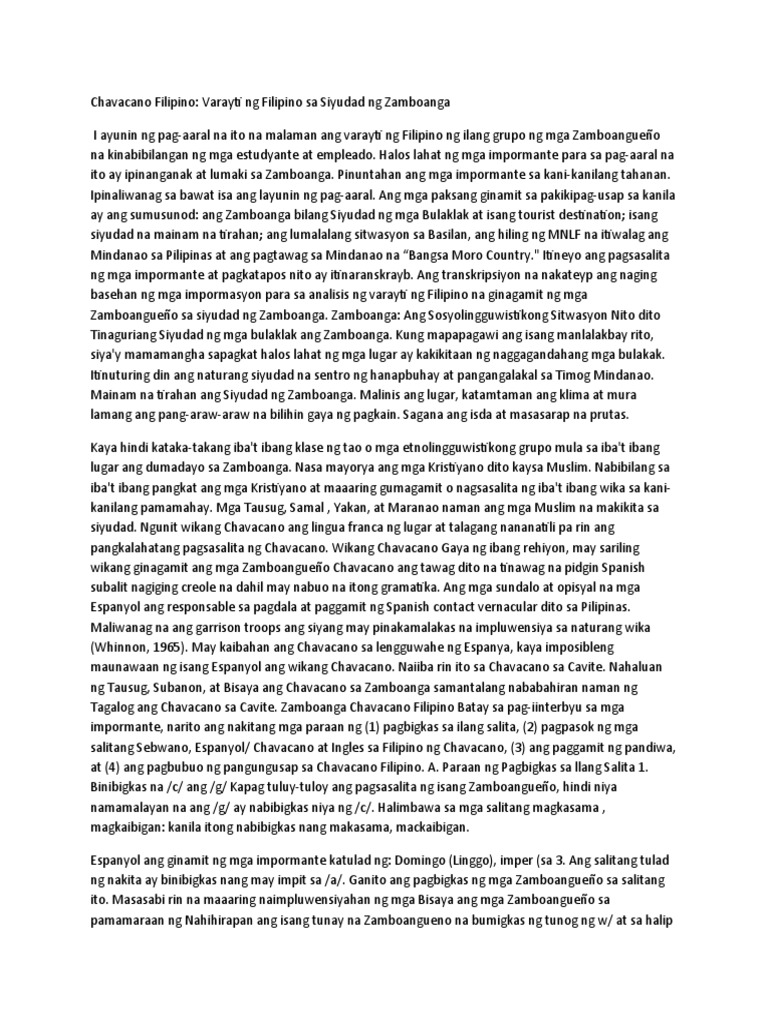 26072004 Sana chavacano na lang naging salita sa buong pilipinas at hindi tagalog. 11072018 Halimbawa ng salitang Chavacano. - nagmumula ang salitang Chabacano mula sa Kastila na halos nangangahulugan ng malaswa.